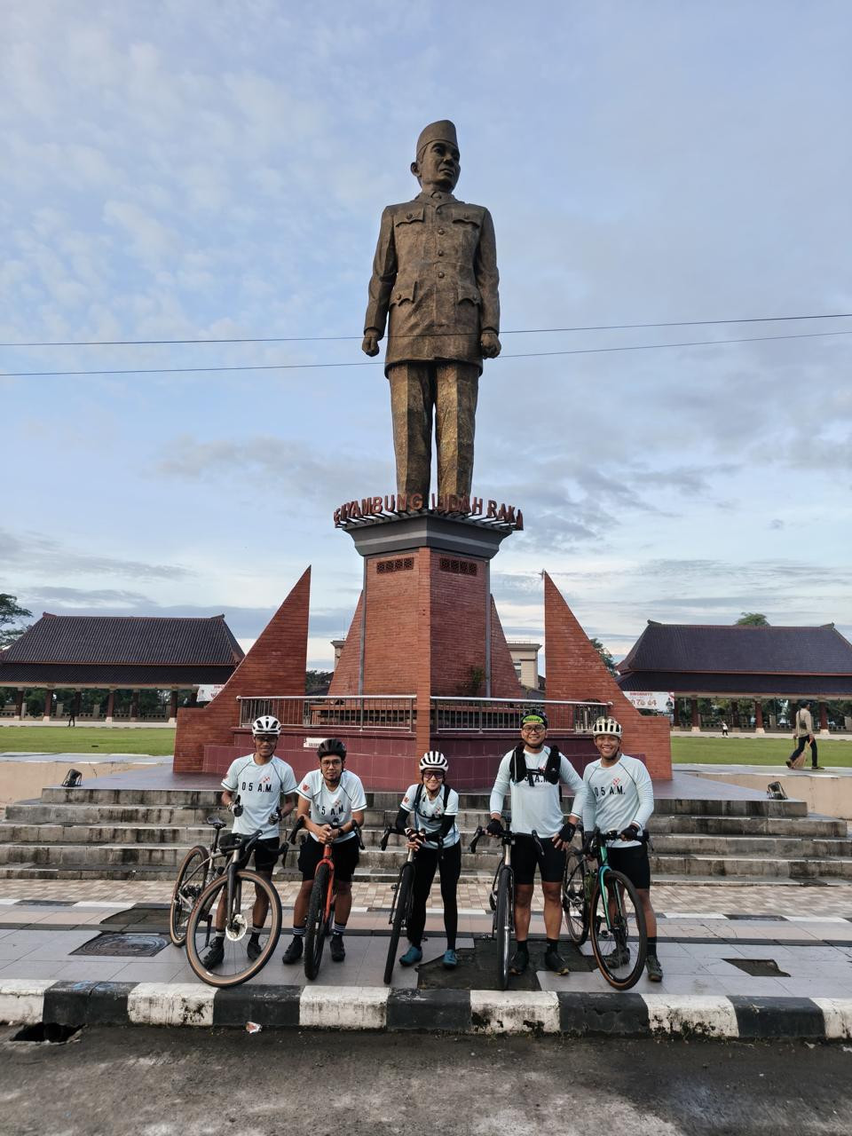 Azrul Ananda dan rombongan berfoto di depan Kantor Bupati Blitar yang akan jadi lokasi start.