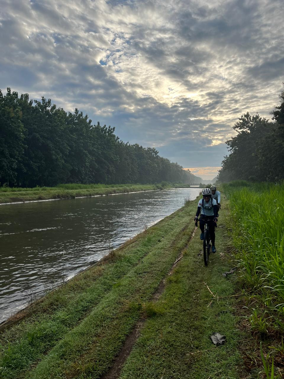 Jalur single track di pinggir aliran sungai.