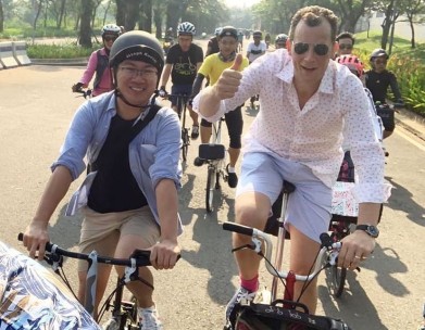 Brompton, sepeda lipat asal Inggris ini disukai oleh cyclist Indonesia. Bentuknya yang unik, cara melipatnya yang mudah, serta warnanya yang trendy adalah nilai unggulan sepeda lipat Brompton. Beruntung, Mainsepeda.com bisa berbincang santai dengan Will Butler Adams, CEO Brompton yang hadir di Jakarta 30 Juni – 1 Juli dan riding bersama 700 Bromptoners di QBIG BSD City, Tangerang, Jakarta.