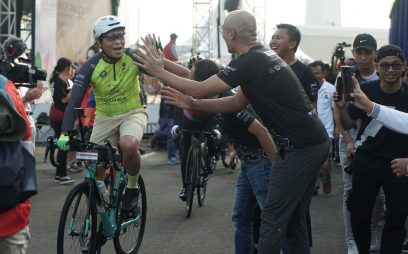 Dzaki Wardana kembali ke tanah air. Setelah menuntaskan tantangan: menaklukkan Trans Am Bike Race (TABR) 2023. Kedatangan Dzaki disambut dengan cara sederhana, tapi penuh kekeluargaan. Di kantor Deltomed, The Mahitala Building, Jumat 7 Juli 2023.