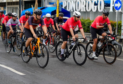 Hampir 200 cyclist dari berbagai daerah menyerbu Ponorogo pada pada Minggu (5/2) kemarin. Mereka gowes bareng dalam acara bertajuk "Gowes Pethuk Ponorogo lan Kawan", alias "Gethuk Dolan 2023".
