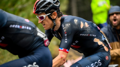 Geraint Thomas (Ineos Grenadiers) mengalami kecelakaan di etape 3 Giro d'Italia 2020, Senin (5/10) malam. Insiden ini membuatnya kehilangan banyak waktu. Posisinya di General Classification melorot dari posisi tiga menjadi peringkat ke-53. Thomas tertinggal 11 menit 17 detik di belakang Joao Almeida.