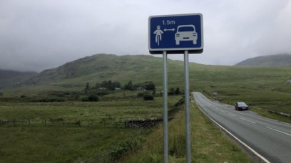 Pemerintahan wilayah Gwynedd, Wales, Inggris Raya mulai memasang rambu-rambu baru untuk melindungi pesepeda. Rambu baru ini mengingatkan pengguna mobil atau motor untuk menjaga jarak dari pesepeda setidaknya 1,5 meter.