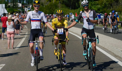 Jumbo-Visma menyapu bersih tiga besar podium di Etape 1 Paris–Nice 2022. Mereka membawa Christophe Laporte juara di tahapan ini.