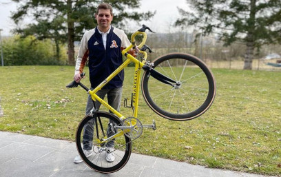 Legenda balap sepeda asal Jerman, Jan Ullrich melelang sepeda Pinarello kuning miliknya dari Tour de France 1998.