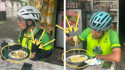 Handika dan Dzaki Wardhana saling bersaing tapi punya pilihan makan yang sama. Di warung yang sama. Mereka Membeli menu yang sama: mie instan.