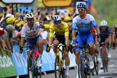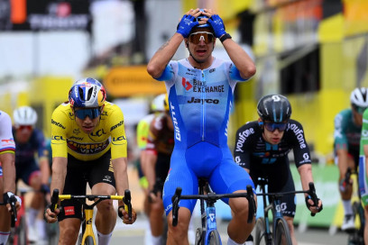 Setelah Fabio Jakobsen (Quick-Step Alpha Vinyl), kali ini giliran Dylan Groenewegen (BikeExchange-Jayco) yang naik podium di Etape 3 pada Minggu, 3 Juli 2022.